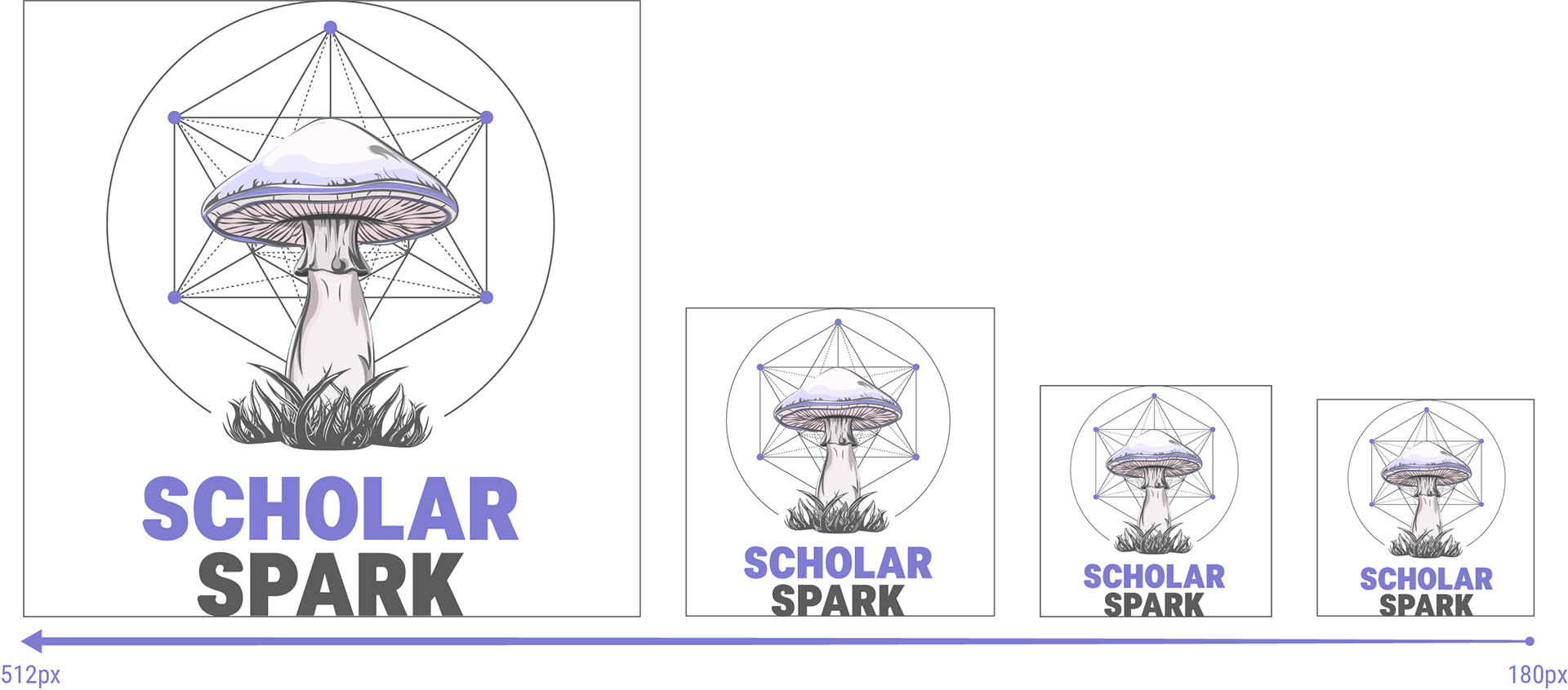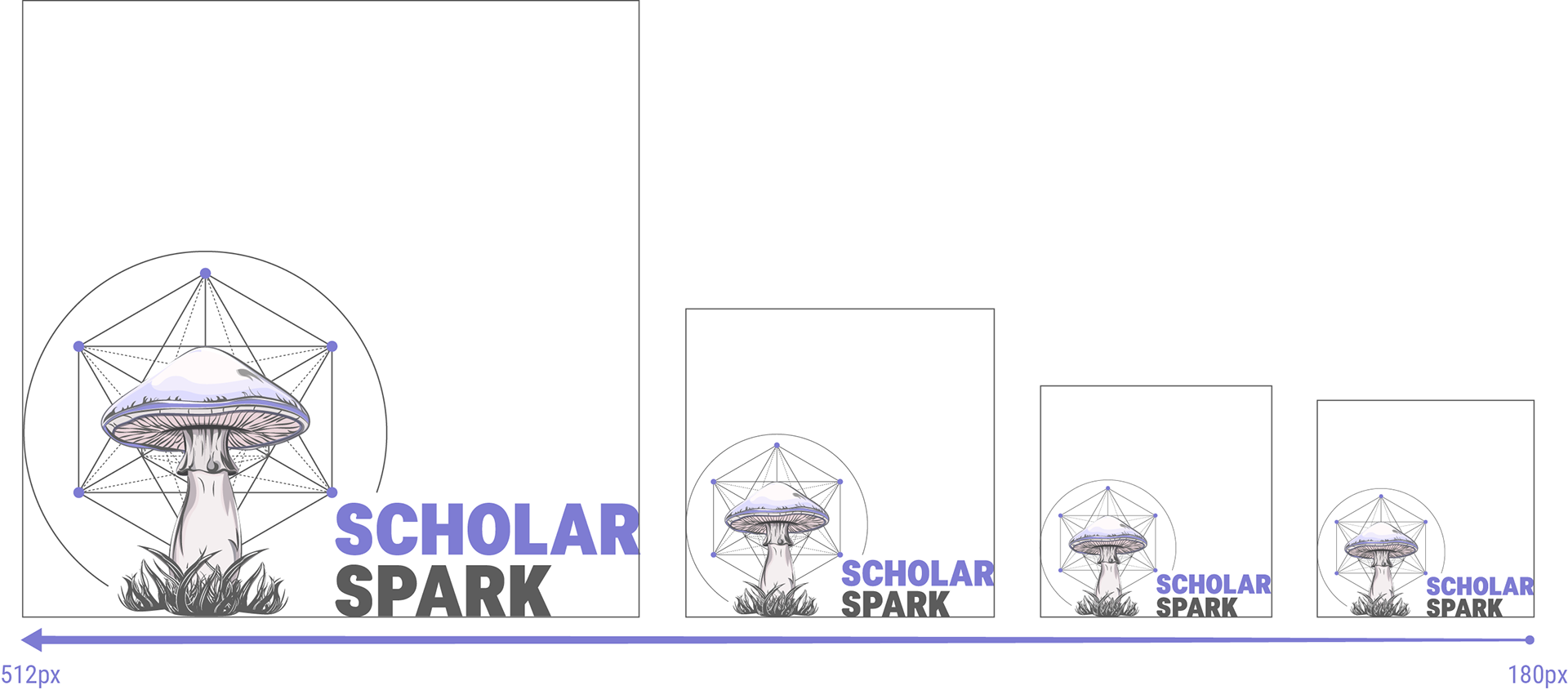 The standalone symbol serves as our favicon (48px–128px), while the horizontal (180px–512px) and vertical (96px–512px) versions ensure adaptability across digital and print media.